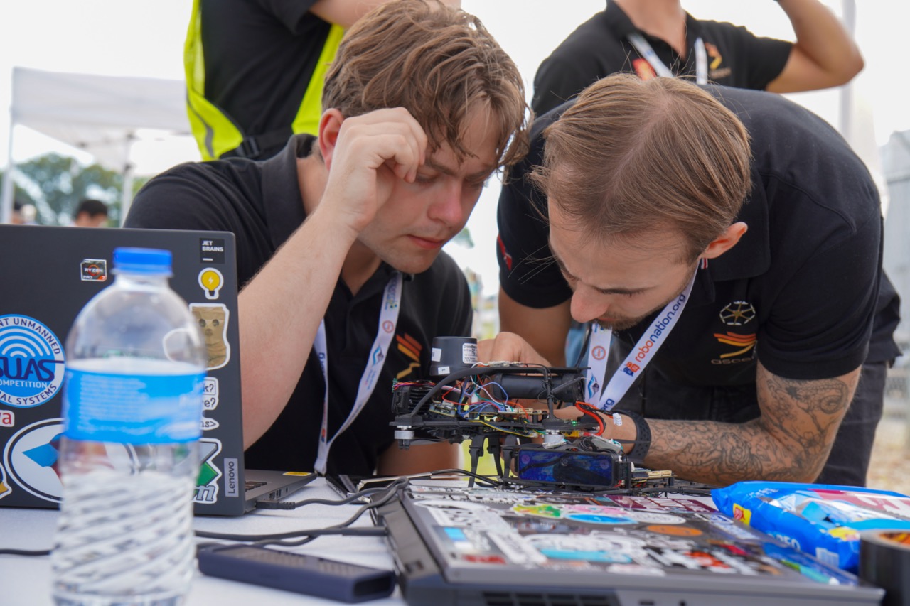 The first flight did not go entirely as planned, with problems related to setup, remote control, and power supply. Between the first and second attempts, the team performed an impressive on-site repair, soldering the power distribution board by hand, a strong demonstration of technical expertise and team spirit.